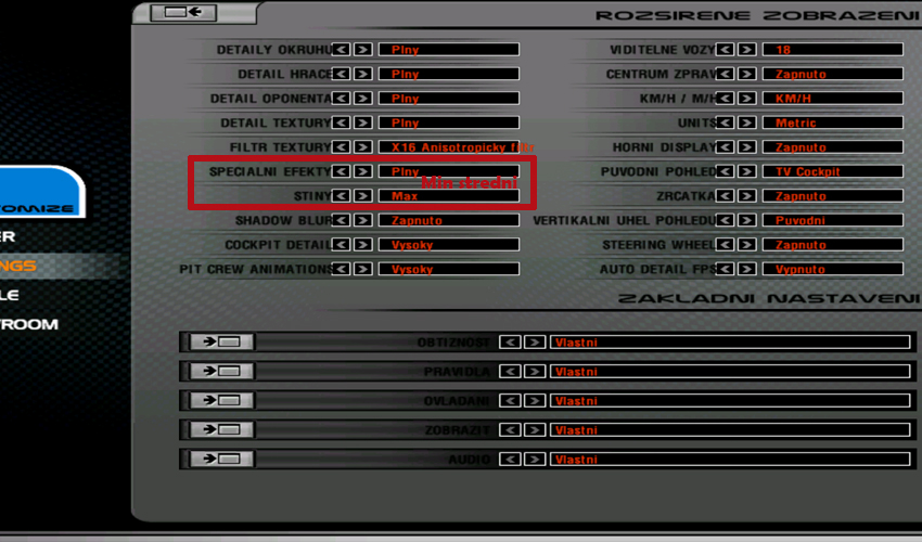 Kvůli používání RFE pluginu je nutné, aby jste si v nastavení grafiky ve hře nastavili úroveň stínů a speciálních efektů minimálně na střední úroveň! Pokud má váš PC nižší výkon tak doporučujeme omezit v tomto nastavení počet viditelných vozů a také klidně můžete dát grafiku ostatních vozů na nejnižší úroveň - rozdíl je jen minimální.