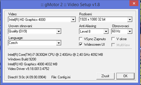 Rada k nastavení grafiky v volbě zobrazení: