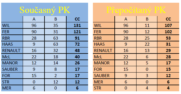 Po několika hodinách přepočtů jsem využil návrhu pana Strišovského a navrhuji změnu, aby se i výkonnostně oddělily body do PK. Body od A jezdců by měly být vyšší než od jezdců B a současně aby se nevyplatilo držet dobré jezdce v B skupině, ale přetáhnout je do skupiny A aby přinesli větší body.