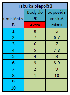 Tabulka bodování do PK pro skupinu B (body pro pohár jednotlivců beze změn) :