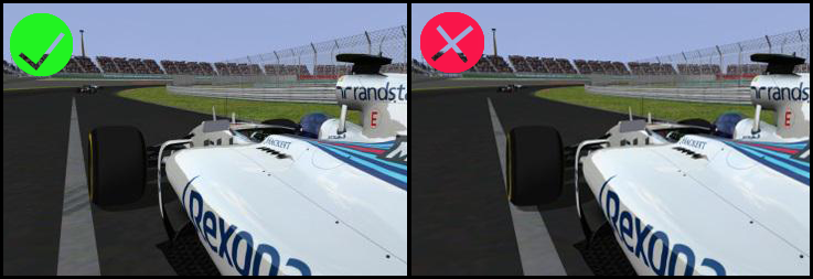 limitů tratě | pokud ani jedním kolem neudrží kontakt s tratí nebo s jeho přilehlou bílou čarou (alternativně žlutou). Kontrola musí být provedena ze Server replay a pro Q je bráno pouze nejrychlejší kolo, nepožádá - li jezdec o započítání jiného - čistého kola. Za každé překročení limitu tratě bude jezdec penalizován +1 sekunda k výslednému času (v závodě je možné porušit limit tratě 3x beztrestně, každý další výjezd podléhá penalizaci).